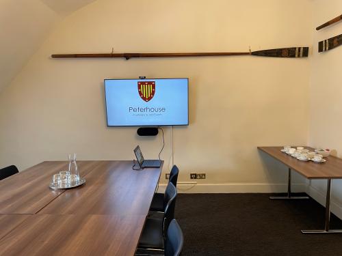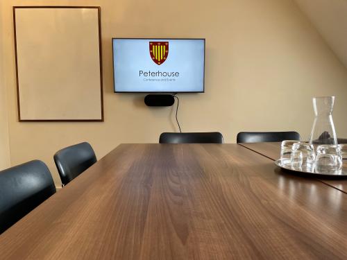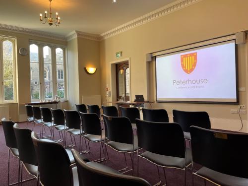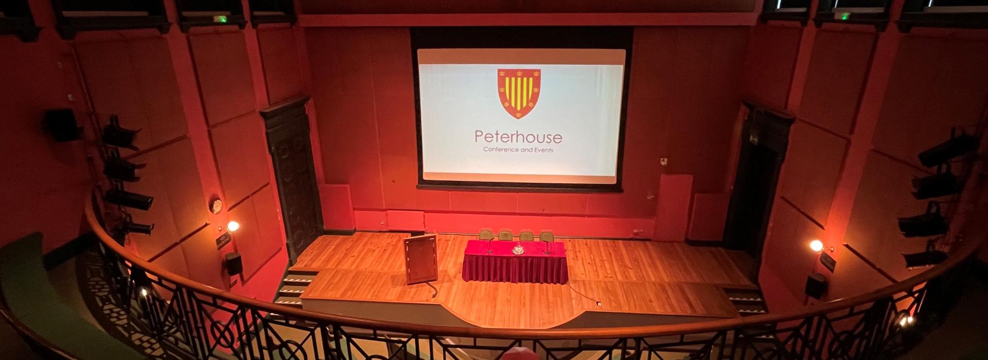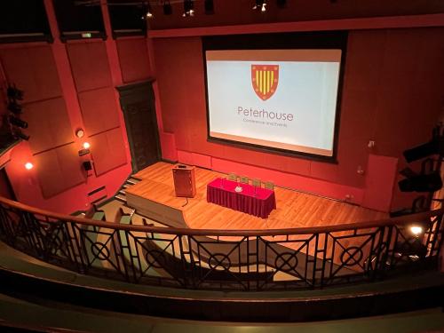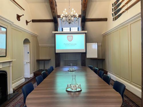 Peterhouse has a range of historic rooms, including a traditional Theatre seating 180, to suit a variety of conference and meeting requirements. In addition to meeting spaces we can offer formal dinner in our oak panelled Hall and Combination Room. We can accommodate from 10 to 110 guests, with capacity rising to 120 for drinks receptions or standing buffets.