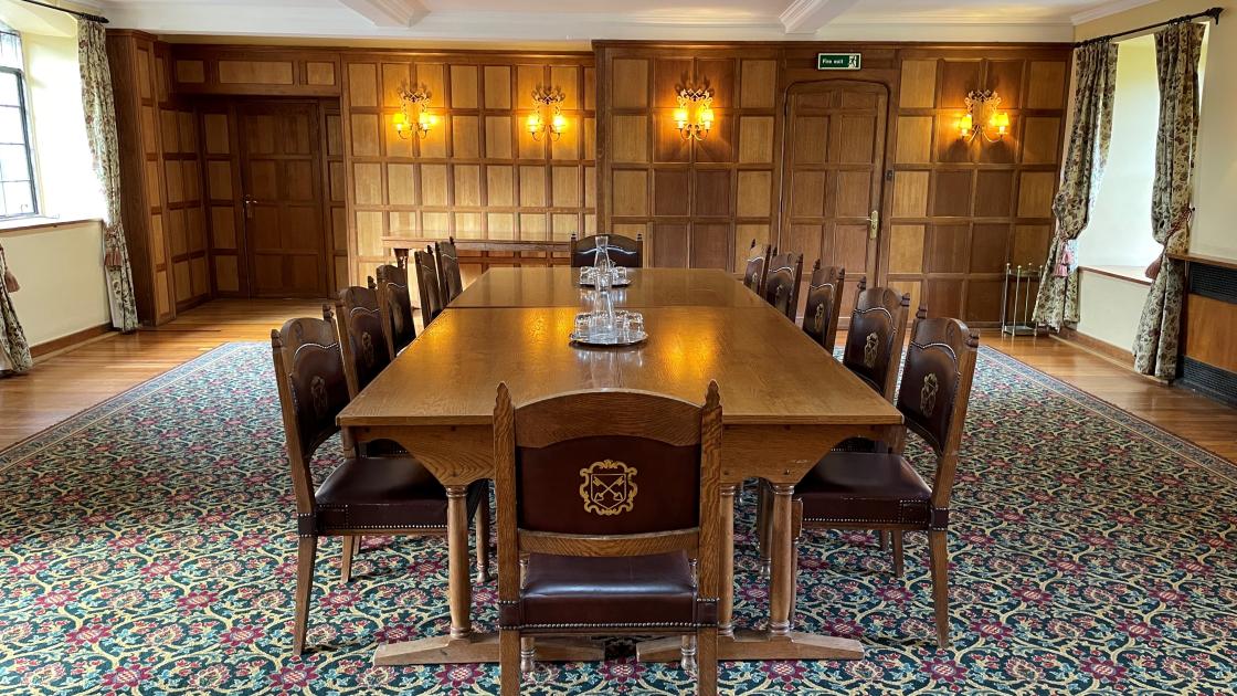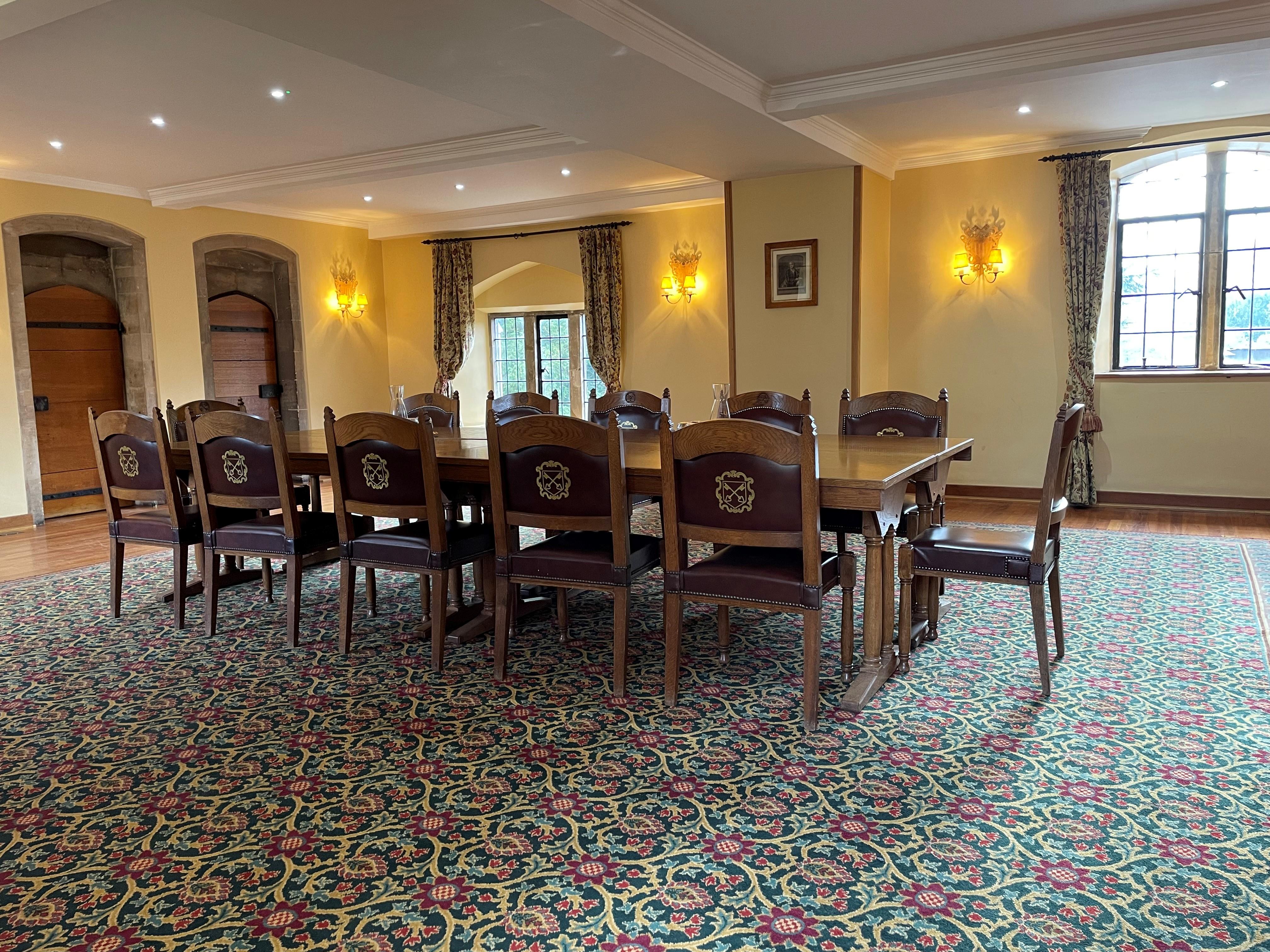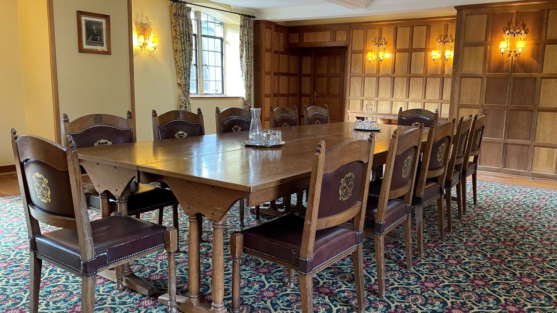 The Upper Hall is an attractive, part-panelled room in the heart of the College, overlooking Old Court to one side and the Deer Park to the other. This flexible space lends itself to smaller conferences, meetings, buffets and drinks receptions.